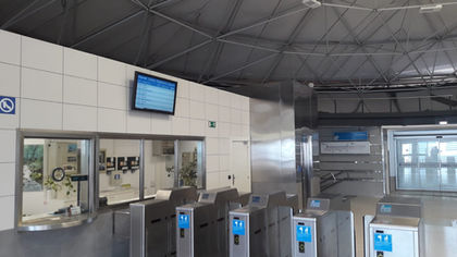 Forrado de fachada con vidrio y panel composite perforado y forrado de ascensores en chapa inoxidable en la ESTACIÓN DEL TOPO de ANOETA en colaboración con las constructoras ALTUNA Y URIA y MOYUA.